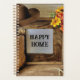 Happy Home Cowgirl Cowboy Style With Cowboy Boots Planner (Edit). Cowboy or Cowgirl hat and Cowboy or Cowgirl boots, with yellow flower in a rustic setting. You can replace "Happy Home" with your own text or initials! Image produced in cooperation with AI. What a great keepsake for Birthdays, Housewarming, Graduations, Anniversaries, Weddings, and more!