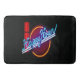 Happy hour neon sign on a black bath mat. There is a shower curtain that matches this.