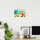 Happy Hour slogan Retro cocktail sunset pool bar Poster