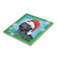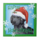 Celebrate the holiday season with a cute Curly-Coated Retriever wearing a Santa hat surrounded by snowflakes and the words, Happy Howlidays! Great holiday gift idea for Curly-loving family and friends.