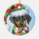 Celebrate the holiday season with a cute Doberman Pinscher puppy wearing a stocking hat and scarf amid snowflakes with the words, Happy Howlidays, on the back! Great holiday gift idea for Dobie-loving family and friends.