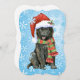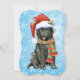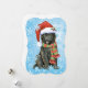 Celebrate the holiday season with a cute Belgian Sheepdog wearing a Santa hat and scarf amid snowflakes with the words, Happy Howlidays! Great for Groenendael-loving family and friends.