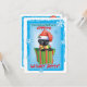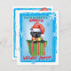 Invite all your friends to a Doggone Great Holiday Party this Christmas with this invitation showing a cute Black Labrador Retriever puppy wearing a Santa hat, sitting in a striped gift box amid a bunch of snowflakes. Have a Happy Howliday Party!