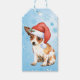 Celebrate the holiday season with a present decorated with a gift tag with a cute Chihuahua puppy wearing a Santa hat amid snowflakes! Great for giving to Chihuahua-loving family and friends.
