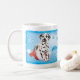 I like to buy and review my own work to ensure you get an outstanding product and I’m happy to give the Primary Colours Beach Football Mug 5 stars because it meets my expectations completely. Pleased with it I am. Zazzle mugs are well fabricated, microwave and dishwasher safe. And this yellow red and blue panoramic wraparound motif is sealed with a durable and sparkling Orca polished gloss glaze finish. It’ll never rub off! The size and energy of two jostling figures and a burly goal keeper fit the mug's circular shape well. There's momentum in the carousel effect as the two jostling figures repeat and move right around the mug and meet a burly goal keeper. Big sharp original images precisely drawn and delicately captured in blue and red with plenty of bright yellow! An ideal gift for anyone who plays ball! A fun gift for all beachball and football fans. A pair with the Retro Grey-Grain Beachball Player Mug. Available in two sizes and several styles including Black Ringer, Travelling, and Stern. Go have a peek!