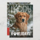 Send joyful holiday greetings with this fun “Happy Howlidays” design featuring bold modern typography and a playful paw print detail. The image area is a customizable template where you can upload your own pet or family photo to make it uniquely yours. Perfect for dog lovers and pet parents, this festive holiday card also includes space on the back for an additional photo and personalized message.