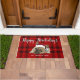 Happy howlidays funny Christmas french bulldog red tartan plaid doormat.
