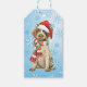 Celebrate the holiday season with a present decorated with a gift tag with a cute Wirehaired Pointing Griffon puppy wearing a Santa hat amid snowflakes! Great for giving to Griffon-loving family and friends.