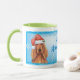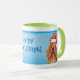 Celebrate the holiday season with a couple of cute Irish Setters wearing Santa hats surrounded by snowflakes and the words, Happy Howlidays! Great holiday gift idea for Irish Setter-loving family and friends.