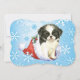 Celebrate the holiday season with a cute Japanese Chin puppy sitting in a Santa hat amid snowflakes with the words, Happy Howlidays on the back! Great for Chin-loving family and friends.