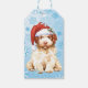 Celebrate the holiday season with a present decorated with a gift tag with a cute Lagotto Romagnolo puppy wearing a Santa hat amid snowflakes! Great for giving to Lagotto-loving family and friends.