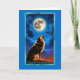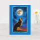 Celebrate Halloween with a playful twist in this delightful "Happy Howloween" card, featuring a majestic dog howling at the full moon. The scene is set against a beautifully lit night sky with dramatic clouds, and the moon shining brightly, casting a glowing halo around the howling dog. Bats fly across the sky, adding a spooky touch to the scene. The text "Happy Howloween" is cleverly displayed at the bottom, perfectly capturing the fun and festive spirit of the season.