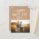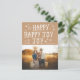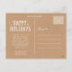 Happy Happy Joy Joy fun white typography with rustic kraft/cardboard background. Upload your own family christmas portrait to the front of this trendy postcard easily and quickly here and now.