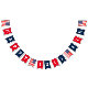 Happy July 4th US flag Bunting Banner Party Flags. Fun party supplies, garlands, flags and accessories for Independence Day party, bbq, family gathering, meeting, event, celebration, reunion etc. Add your own text and colours optionally. Cute swallowtail design with bold letters for home or office. Create red white and blue decorations for Fourth of July. Cheerful USA pride template design with stars and stripes flag of America.
