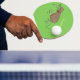 Happy jumping kiwi with bow tie cartoon design ping pong paddle