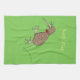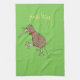 Happy jumping kiwi with bow tie cartoon design tea towel