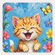 Bring a burst of cheer to your life with this heartwarming illustration of a laughing orange kitten surrounded by vibrant garden flowers and a fluttering yellow butterfly. Set against a dreamy blue sky, this playful and whimsical art piece radiates joy, innocence, and the magic of spring. The fluffy tabby kitten, with its expressive eyes and beaming smile, is featured in a bright, cheerful style that will melt hearts and lift spirits instantly.