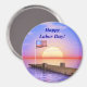 A magnet with my computer artwork of a dock with the American flag and a setting sun. Customisable text says "Happy Labour Day!"