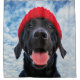 Happy Labrador in a Red Beanie Under a Blue Sky Shower Curtain