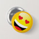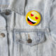 Cute laughing happy emoji face button badge with love heart eyes, that's perfect for your emoji theme party