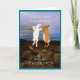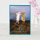 Two rabbits, one white one ginger jumping in the air on the beach. There is a bottle of champagne and two glasses in the foreground." a leap year anniversary is to be celebrated" is written on the front.