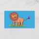 Happy lion with butterfly cartoon illustration business card