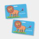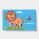 Happy lion with butterfly cartoon illustration ID badge