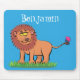 Happy lion with butterfly cartoon illustration mouse mat