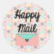 The size is just perfect and the sticker is very sticky and easy to peel. The picture is slightly Blurred but because of the size its not as noticeable from afar. Still great design. Simple and very cute