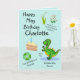 A unique card that you can personalise showing the Birthday months birth stone, flowers and Dinosaur Day as well as a slice of Birthday Cake and Candle. Personalise with the Name and the message inside can be added to, or removed by following the "personalise this Template" prompt.