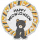 Happy "Meow"loween! This sweet black cat kitten drawn in a stuffed animal style and her candy corn wreath is here to help you welcome the warm, fun, happy, not-at-all scary aspects of Halloween. What could be sweeter?