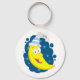 A happy yellow moon face wearing a blue and white hat. This design looks really effective on these Keychain