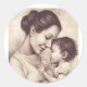 Mother's Day round stickers featuring a mother with an infant in her arms: