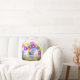 Throw pillow with my original design of a pretty basket of flowers and a little blue bird for Mother's Day. Customisable text says "Happy Mother's Day".