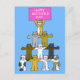 Different cartoon cats standing on each other's shoulders in a pyramid shape. The top cat is holding up a pink sign that says 'Happy Mother's Day'. The image is set against a bright blue coloured background. A purr-fest card or gift for any cat loving mother.