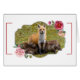A sweet image of a mother fox patiently nursing her many kits with a flowered border.