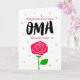 Remind your Oma how special she is to you with this unique brush script typography design featuring the message, "Oma, You Mean Everything." Design is accented with beautiful red rose illustration and colourful polka dots.