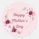 happy mothers day red gold floral pink classic round sticker