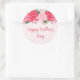 Round happy Mother's Day sticker shown with a pretty pink floral print.