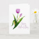 Celebrate Mum with timeless elegance. This Happy Mother’s Day greeting card features delicate hand-painted watercolour tulips in soft purple and green tones, accented with subtle gold details for a refined, modern look. Ideal for mums who love floral, botanical and minimalist designs, this card is perfect for Mother’s Day from a son, daughter, someone of any gender or the whole family.