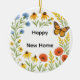 This "new home" ornament presents a vibrant floral wreath design alongside the greeting, "Happy New Home". The reverse side features the message, "A new home, a new beginning, a place where memories grow", along with a personalized date space, transforming it into a meaningful gift and cherished keepsake.