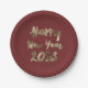 Happy New Year 2018 Burgundy Red Gold Typography Paper Plate