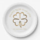 Happy New Year 2023 or Your Text Four Leaf Clover, Faux Gold Clover, Elegant New Year's Party or Good Luck Occasion Paper Plates, you can change or delete all text