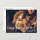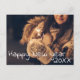 Modern Happy New Year 2023 Script Full Photo Postcard. Simple and modern custom Happy New year photo postcard with greetings. Personalise the address, greetings and the name on the backside of the postcard and the year on the front. Modern holiday photo postcard with a full photo. You can add your favourite holiday photo into the template. The Happy New year text overlays the photo and is in a trendy handwritten white script. Great for New year greetings for a single person or a family.