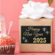 Modern and elegant Happy New Year 2025 Elegant Sparkles Rectangular Sticker with white sparkles on a black background and in a trendy script. Simple sticker for wishing your friends and family happy New year. You can change the text if you want.