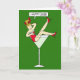 A cartoon of a lady wearing a fun red outfit, reclining in an over sized cocktail glass. The lady is saying 'Happy 2026' and the image is set against a dark green background.
