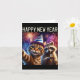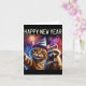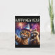 Happy New Year 2026 Cute Cat Raccoon Celebration Card