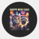 Happy New Year 2026 Cute Cat Raccoon Celebration Classic Round Sticker