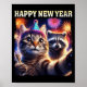 Happy New Year 2026 Cute Cat Raccoon Celebration Poster