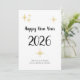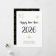 Happy New Year 2026 holiday card, with cute black typography on a white background. With customisable lettering, you can add your own message. A gold snowflakes pattern accents the front of the card and covers the black background on the back. A wonderful way to welcome the New Year.